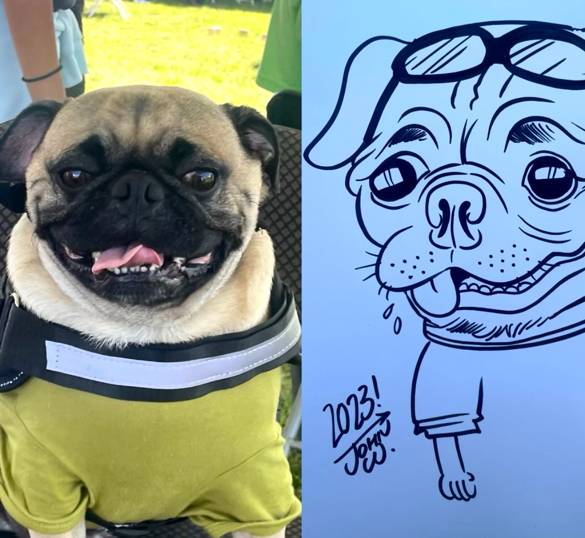 I can fit up to five people on one drawing and I also draw dogs as well.
